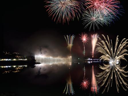 「しだはら湖面火まつり」は、昭和60年に地元の若者がダムで花火を打ち上げたことをきっかけに始まったお祭りです。