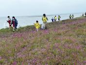 誰もが知っているラジオ体操を長洲弁にアレンジした長洲弁ラジオ体操で体をほぐした後、海岸の清掃作業を行います。