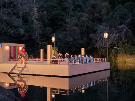 竹田薪能とは、400年前から岡藩主のために行われていた能楽です。元禄の時代の三日月を再現し、実際に流れる稲葉川に水上の舞台を設け、一夜限りの幻想的な能舞台を創り上げます。幽玄の世界に包まれる竹田の夜に、ぜひお出かけください。※詳細はホームページをご確認ください。