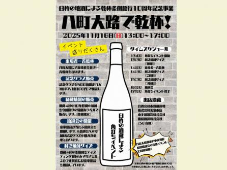 「一杯目は臼杵の地酒で乾杯」を推奨する「臼杵の地酒で乾杯条例」が今年で施行10周年を迎えるにあたり、記念イベント「八町大路で乾杯!」が開催されます。