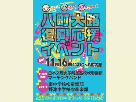 当日は、日本文理大学付属高校、臼杵市立東中学校、野津中学校の吹奏楽部による「八町大路復興応援音楽イベント」や八町大路商店街の美味しいものやこだわり商品を販売する「八町大路幟市」も同時開催されます。