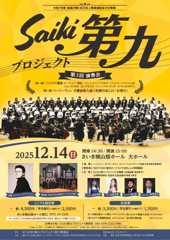 年末の恒例行事として親しまれる「第九」の演奏会。佐伯市の市民参加型プロジェクトとして行われる本公演では、荘厳で力強いベートーヴェン「交響曲第九番」を迫力ある合唱とともに楽しめます。1年を締めくくるにふさわしい感動のひとときに、ぜひ足をお運びください。