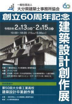 協会の創立60周年の節目となる今回は「大分のまちを元気にする建築」をテーマに、大分県内で学ぶ建築学生(高校・高専・専修・短大・大学・大学院)と、大分県で働く若手建築家(45歳以下)による公募作品が展示されます。建築を通じて夢を想像し、建築技術者として将来の夢を育てる未来のまちづくりを担うアイデアに触れに、ぜひ足をお運びください。※詳細はホームページをご確認ください。