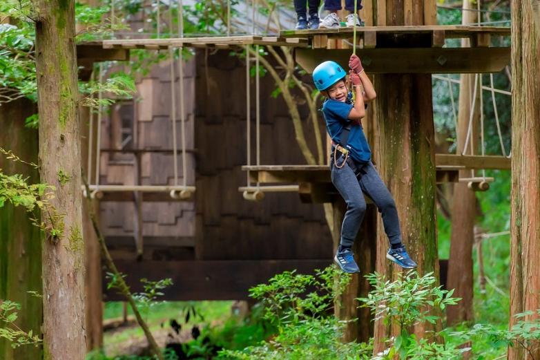 フランス発の自然共生型アウトドアパーク「フォレストアドベンチャー」。木に登って、木と木の間に張られたロープや橋の上を渡るなど、地形や森林をそのまま生かした様々なアクティビティで遊ぶことができる話題の施設です。