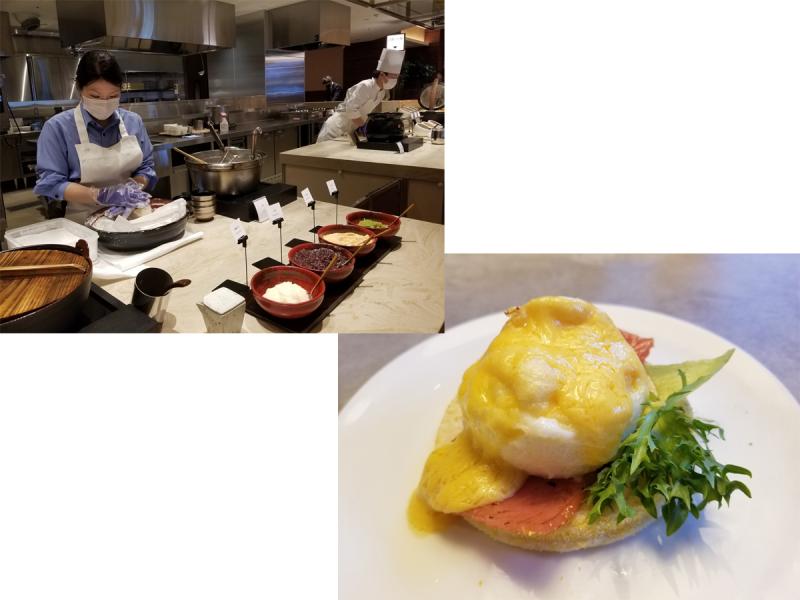 和食メニューやたっぷりのフルーツのほか、お団子やエッグベネディクトなどは出来立てを提供しています。