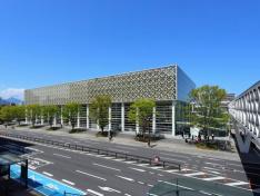 大分の伝統工芸である竹工芸をイメージさせる外観の建物は、世界的建築家・坂 茂氏の設計によるもの。