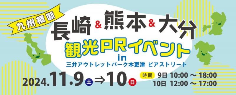 11月9日(土)・10日(日)、三井アウトレットパーク木更津にて、長崎県・熊本県・大分県の合同3県による観光PRイベントが開催されます。