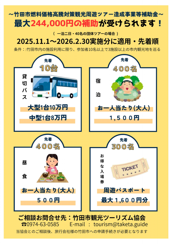 竹田市・観光周遊ツアー造成事業等補助金のお知らせ