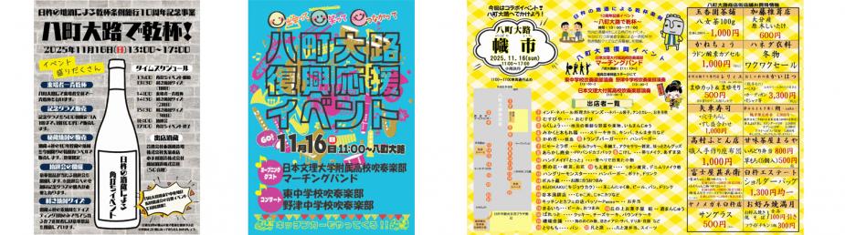 ・日程:2025年11月16日(日)・時間:八町大路復興応援音楽イベント・八町大路幟市11:00~/八町大路で乾杯!13:00~17:00
