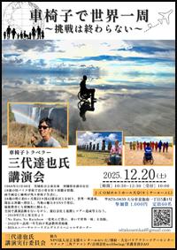 12月20日(土)、J:COMホルトホール大分にて「車椅子で世界一周〜挑戦は終わらない〜三代達也氏 講演会」が開催されます。