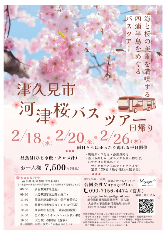 【参加者募集】津久見市河津桜日帰りバスツアーが開催されます!