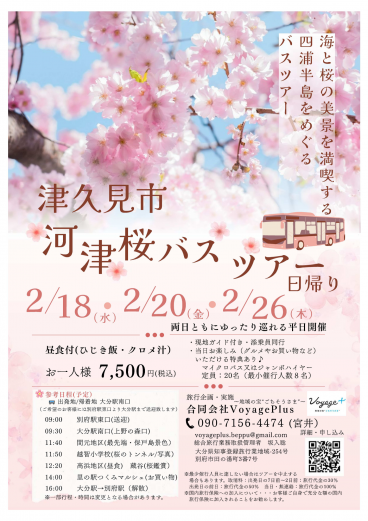 桜の名所として知られる四浦半島の河津桜スポットを巡る、日帰りバスツアーが開催されます。
