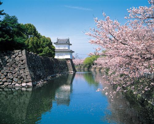 桜の名所としても知られており、毎年60本以上のソメイヨシノが咲き始めると、花見客で賑わいます。城址の石垣から見ることができる桜色の絨毯は、一見の価値ありです。