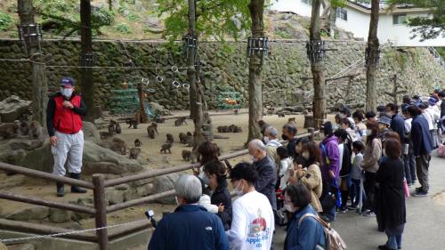 餌やりの時間になると、どこからともなく多くのサルが寄せ場へ集まり、その光景は圧巻です。スタッフがニホンザルの生態や、習性、出来事などの説明を常時行っており、高崎山のサルたちの生活を楽しく観察することができます。