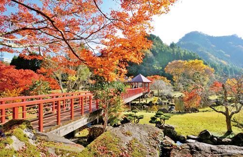 溪石園(けいせきえん)は耶馬溪ダム完成を記念してつくられた日本庭園です。 耶馬溪の石を12万個使用し、中には高さ6mの巨石も見られます。男滝、女滝、ロックガーデンを配しており桜や紅葉の季節になると、多くの観光客で賑わいます。