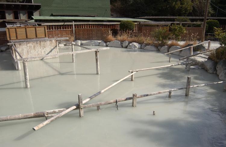 別府八湯の1つ明礬温泉の地域にある別府温泉保養ランドの名物は、全国でも珍しいクリームのような泥の中に身を浸す美肌効果抜群の泥湯です。