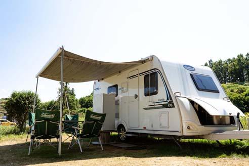 九州・沖縄でトレーラーハウス部門1位になった、大分県豊後高田市の『長崎鼻ビーチリゾート』。(キャンプ場ポータルサイトなっぷ調べ)