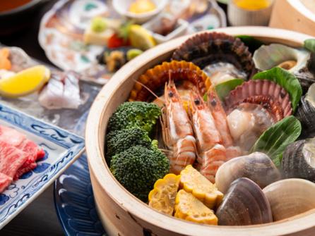 自慢の温泉は、まるで青磁のような優しいミルキーブルー色で、庭園の中の露天風呂は美しい泉水のようです。