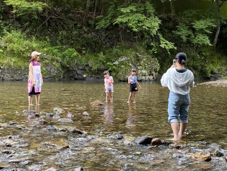美しい川で泳いだり、合宿やサマーキャンプを開催したり、蛍鑑賞やキャンプファイヤーを楽しんだりすることができます。
