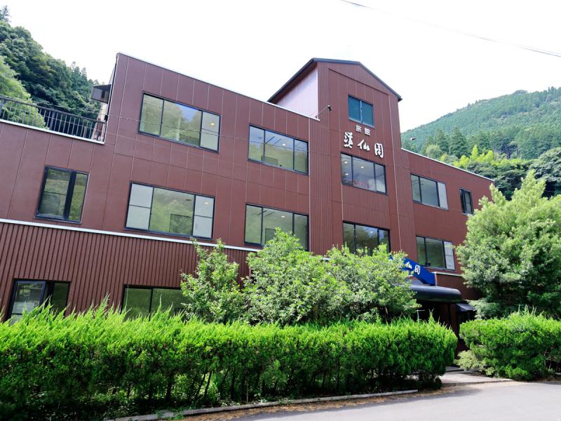 温泉街から少し離れた静かな渓谷のそばにある旅館。その温泉の魅力はなんといっても、泉質と景観の良さ。ほのかに硫黄の香りが漂うお湯が49度という適温で湧いており、空気に触れることのない“大地の搾りたて温泉”がそのまま湯船へ注がれています。