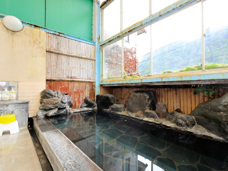 日帰りでも利用可能な温泉は、野趣あふれる露天風呂とこぢんまりとした内湯が1つずつ。透明度が高く、やわらかな肌ざわりの単純硫黄泉には湯の花も舞っています。宿泊すれば朝と夜で違う雰囲気を楽しむことができます。