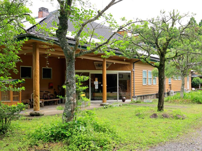 くじゅう連山を望む標高500mの森の中に佇む「新湯治スタイルの宿」。この温泉を求めて、2か月に2日、年に3回など定期的に自分のペースで滞在しながら温泉療養をする人も多いとか。