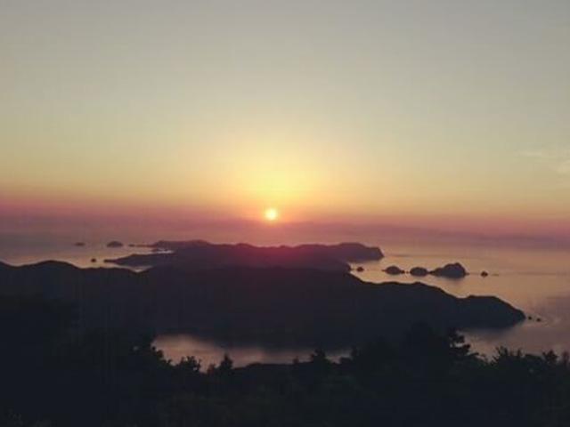 津久見市四浦半島の先端付近にある「高浜海水浴場」は海水の透明度が高く、ウミガメが産卵に来ることもある、サラサラとした砂が一面に広がる美しい砂浜と、碧くきれいな海が特徴の海水浴場です。その砂浜に下り、豊後水道から昇る初日の出を拝むことができます。