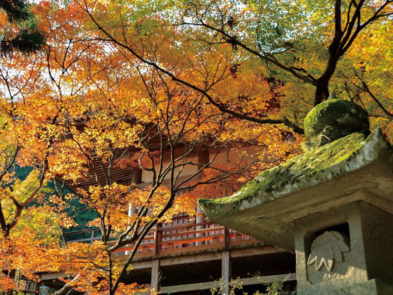 江戸期より六郷満山の総持寺として総括を担ってきた由緒ある古寺。国東市屈指の紅葉スポットとしても有名で、真っ赤なモミジや黄金色に輝くイチョウが護摩堂を取り囲むように色づきます。境内にある「しぐれ紅葉」は七不思議の一つで、晴れた日でも雫が落ちてくると言われています。