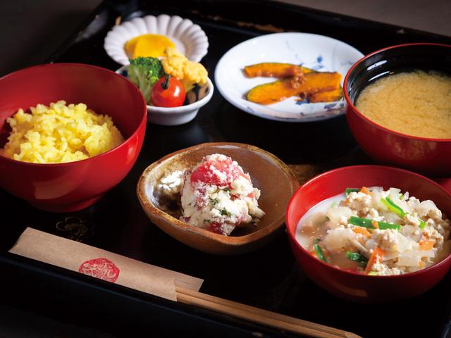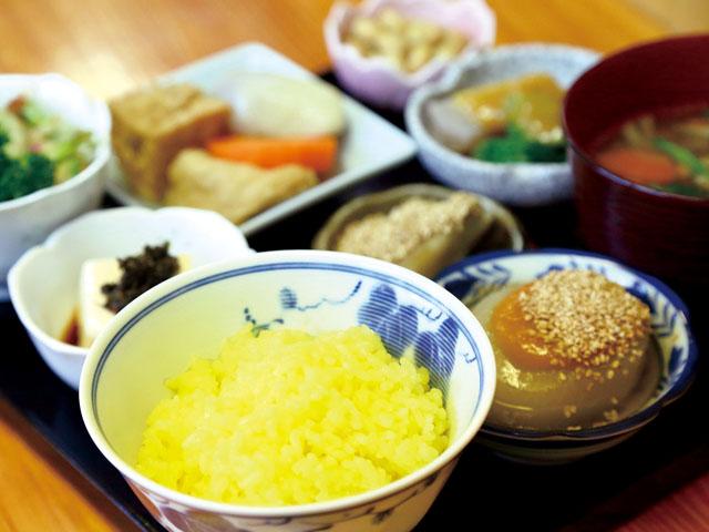 醤油蔵を改装したレトロな空間で、臼杵の郷土料理がいただける「ポルト蔵ランチ」をぜひ。クチナシの実で炊いた「黄飯(おうはん)」、根菜などの野菜をたっぷり煮込んだ「かやく」、江戸時代に生まれた、魚におからをまぶした「きらすまめし」などが楽しめます。
