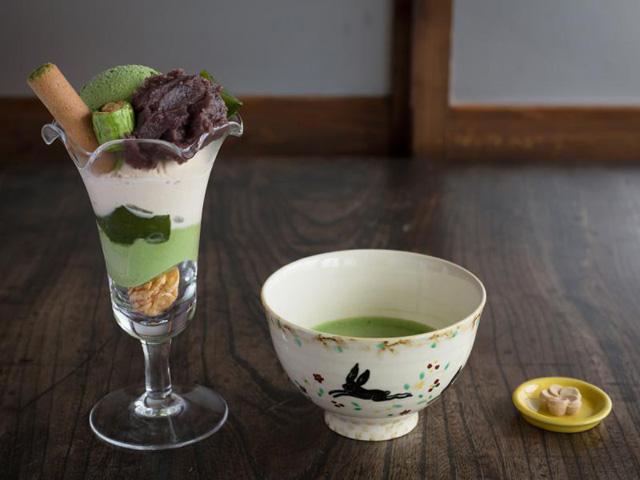 明治26年創業の老舗『丹羽茶舗』に隣接する和風喫茶。自家製の抹茶アイスとプリン・ほうじ茶アイス・あんこまでお手製の「特製抹茶パフェセット」は、抹茶と干菓子が付いて欲張りさんも大満足☆季節替わりのお菓子を選べるお茶セットもおすすめです。