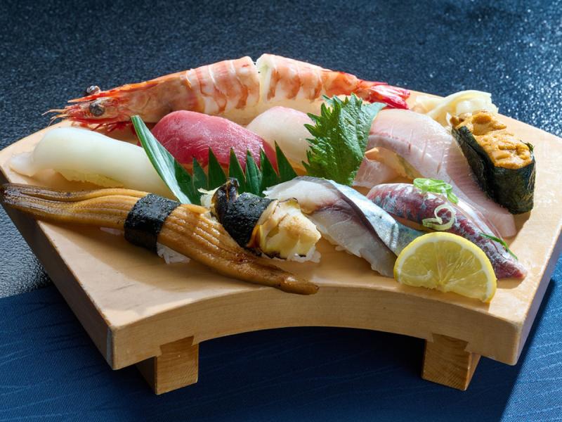 日田発祥の「たか菜巻」をはじめ、カラフルな野菜が握られた名物「ひたん寿し」が味わえる寿司処。大将が厳選した旬のおいしさを引き立てた味わいが魅力です。食材に合わせて、一つひとつ違った味付けをしていて、お酒にもぴったり!お昼は予約が必要です。