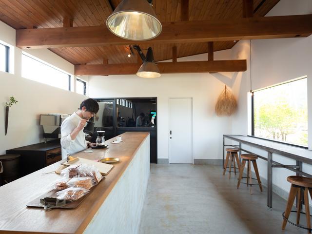 仕入れから焙煎、ドリップまでオーナー自らが行うカフェ。シンプルな店内はどの席からも長閑な風景を望むことができ、ホッと落ち着ける空間になっています。ネルドリップで丁寧に淹れたこだわりコーヒーをどうぞ。
