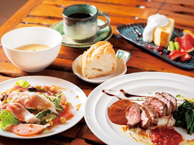 築百年の古民家をリノベーションしたレトロな佇まいのお店。サラダオードブル、日替わりスープ、ドリンクが付く人気のランチは、メインを数種類から選べてボリュームも満点(デザートはプラス料金)!夜はお酒にピッタリなメニューがズラリと並びます。