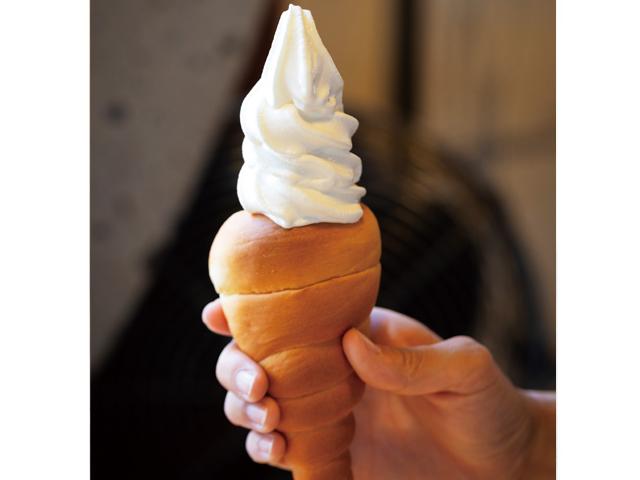 古い町家の外観がかわいいカフェ。ここで人気なのが、なんとコーンの代わりに、揚げたてのコロネの上にアイスがのった変わりダネソフトクリーム。バニラ味のほかに、日田の特産品である梨や柚子胡椒味もあります。柚子胡椒は意外な美味しさにビックリ!