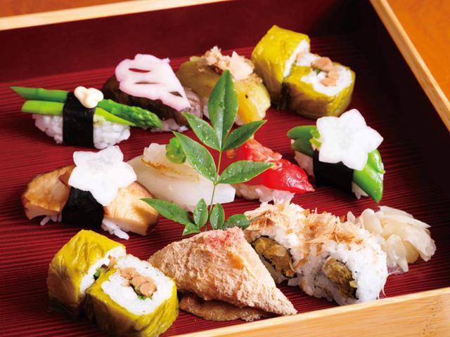 日田発祥の「たか菜巻」をはじめ、カラフルな野菜が握られた名物「ひたん寿し」が味わえる寿司処。大将が厳選した旬のおいしさを引き立てた味わいが魅力です。食材に合わせて、一つひとつ違った味付けをしていて、お酒にもぴったり!