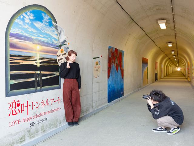 「恋叶ロード」沿いになるフォトジェニックスポット。全長421mのトンネル内に「写真を撮って楽しめるアート作品」が並んでいます。恋人・友達・家族、みんなで楽しめる壁画が満載です!