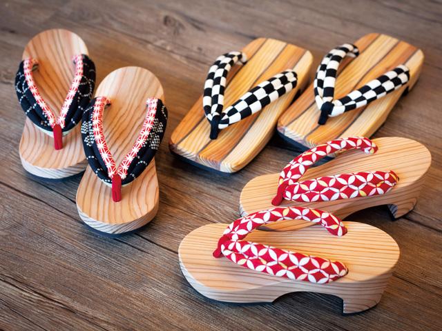日田は昔から杉の産地として知られ、下駄が作られてきました。木目の美しさと、履き心地の良さが人気で、クラフト作家とのコラボ商品などセンス抜群なデザインの下駄が注目を浴びています。鼻緒と台を選んで作るプチオーダーメイドもできちゃいます。