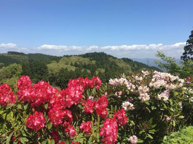 西日本最大級の規模を誇るしゃくなげ園。園内には、100種類20,000本のシャクナゲが咲き誇ります。日本シャクナゲ、西洋シャクナゲが順次見頃を迎えるため、長い期間シャクナゲを楽しむことができます。高台に位置するため、そこからの景色も絶景です。