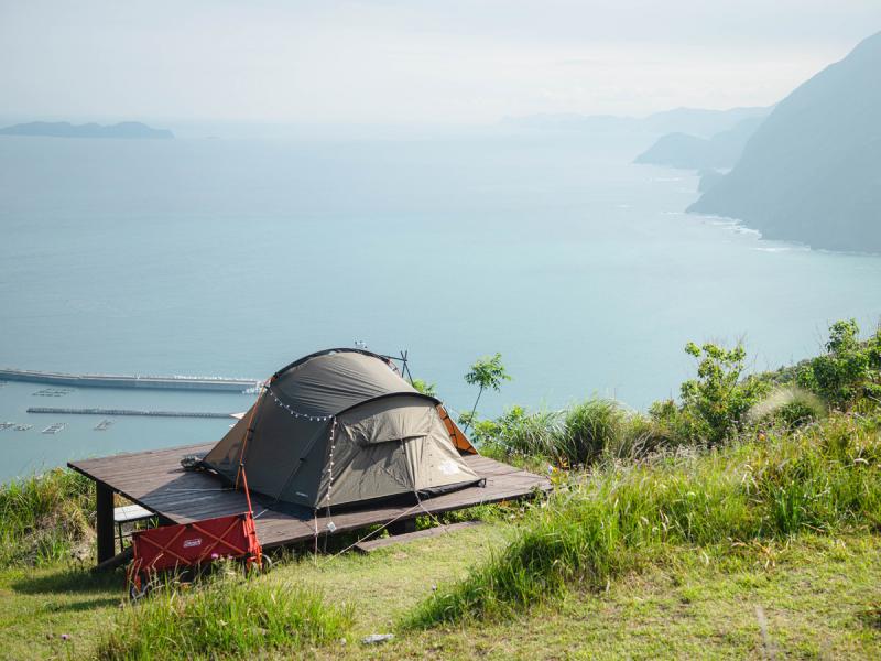 標高約300mの場所にある大分県最南端のキャンプ場。真下に広がる青い海と青い空をぜいたくに見渡しながら自然と一体となって過ごすことができます。夜には星空と漁船の光をみることができ、敷地内にあるカフェのコーヒーを片手にゆったりとした時間を過ごすのもオススメですよ。