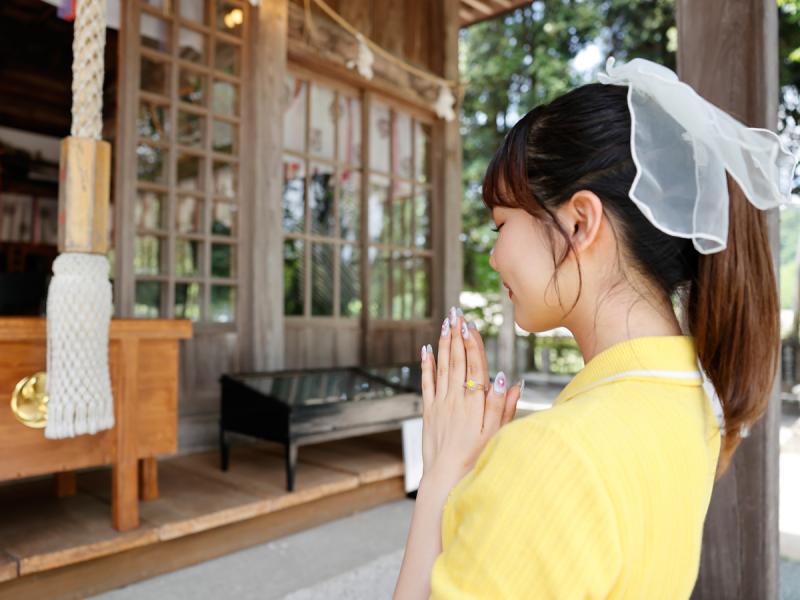 「三日月の滝」のそばにあるこの神社では、コロナ禍で手水や柄杓が使えなくなった際に少しでも参拝者に喜んでもらおうと、季節の花を手水に浮かべるようになりました。数カ所ある手水には、彩り豊かな花々が飾られており、フォトスポットとしても人気です。