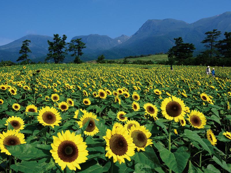 開園30周年を迎え、4月には華道家の假屋崎省吾氏が名誉理事に就任した『くじゅう花公園』。花の数は年間500種類、500万本にも及びます。6月下旬~ 7月上旬はラベンダー、8月上旬~中旬はひまわり、9月~は千日紅、サルビア、マリーゴールドなどが咲き誇ります。