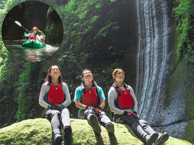 超軽量ボートで、由布川峡谷の奥深くを目指し冒険する「パックラフトツアー」。所要時間は約4時間30分で、ボートを担いで歩いたり、巨岩を越えたり…と体力が必要なコースですが、その先には自然が創り出した神秘的な岩壁など、数々の美しい景観に出会えます!