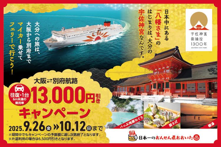 <大阪⇔別府 往復マイカー13,000円引きキャンペーン>
