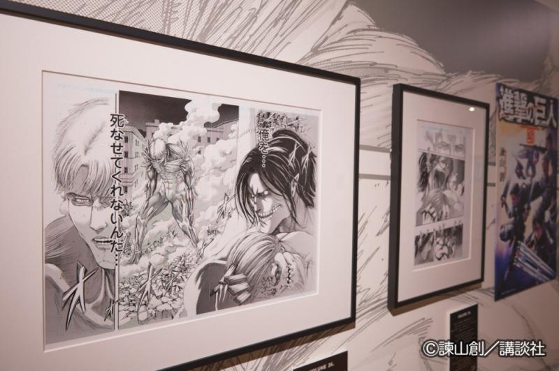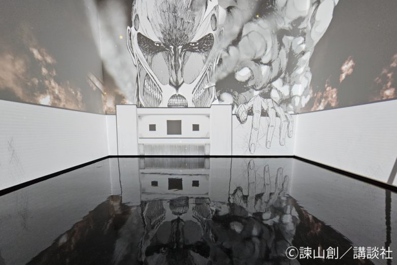 「進撃の巨人 in HITA ミュージアム」にはない、漫画への没入体験ができる「イマーシブコミック」の上映やコミックスのなかから諫山創がコメント付きで印象的なシーンを紹介している展示などがあります。