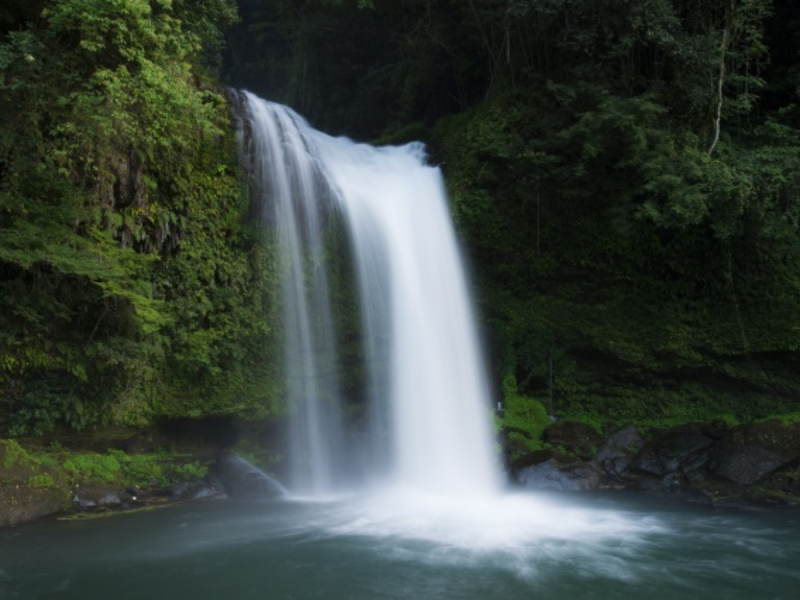 日田市天瀬町と玖珠郡玖珠町の境にある「慈恩の滝」は、名前の由来となった「大蛇伝説」や「龍神伝説」が残っており、とてもロマンがある滝です。上段は20m、下段は10m、全長30mの二段落としといわれる滝の流れは豪快で迫力満点です。 上段の滝は両側の岸壁に囲まれ奥まったところにあるため、正面から絶景の滝が見られます。 体感温度はマイナス5度と言われており、暑い時期には涼しさを求めてたくさんの観光客で賑わいます。また、夜はライトアップされ、昼とは違う幻想的な風景も楽しめます。