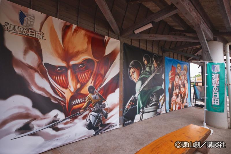 日田・大山エリアでは、諫山創ゆかりの地や主要な場所に『進撃の巨人』のキャラクターパネルを設置しています。