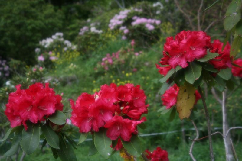 大山しゃくなげ園では、100種類・2万本ものシャクナゲが色とりどりに咲き誇ります。標高500~600mの山あいにあり、広大な敷地のなかで大山ダムも見える見晴らしの良い景色が楽しめます。歩きやすい靴でいくのがおすすめで、展望所からの眺めは特に人気です。 ※4月中旬~5月中旬のみの開園