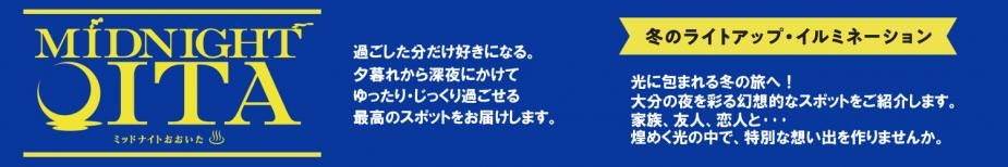 <a href=" https://www.visit-oita.jp/topics/detail/577#night"target="_blank"><font color="#0033ff">【ミッドナイトおおいた】<br>夜も冷めないおもてなし</font><br>大分を彩る幻想的な夜景スポットをご紹介。きらめく光の中で、特別な想い出を作りませんか。</a>