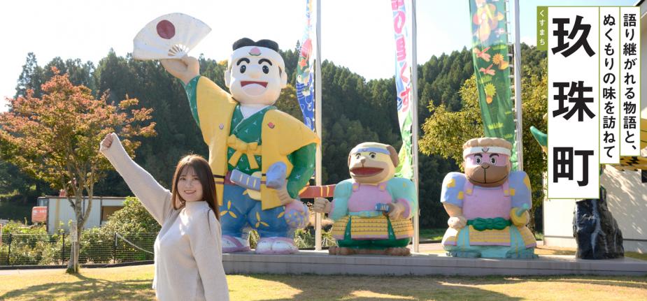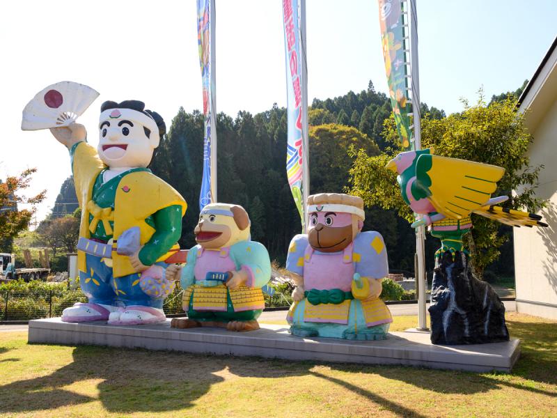 ▲入口には桃太郎のモニュメントが立っています。玖珠ICの前なので立ち寄りに便利