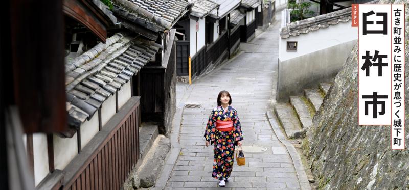 <a href=" https://www.visit-oita.jp/topics/detail/577#usuki"target="_blank"><font color="#0033ff">【特集1:臼杵市】<br>古き町並みに、歴史が息づく城下町</font><br>着物姿で風情ある城下町を散策したり、贅沢に「ふぐ」を味わったり・・・。魅力いっぱいのスポットをご紹介します。</a>